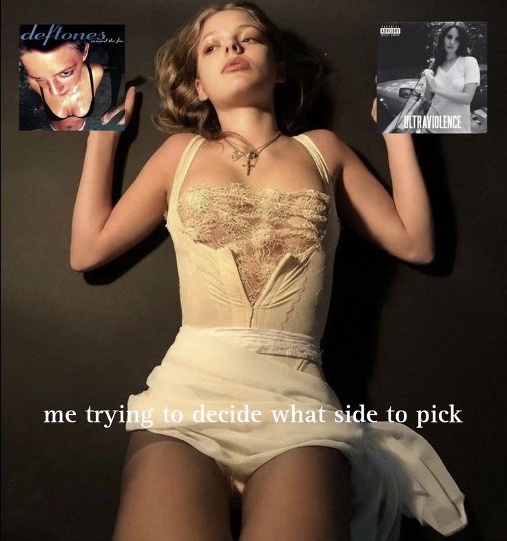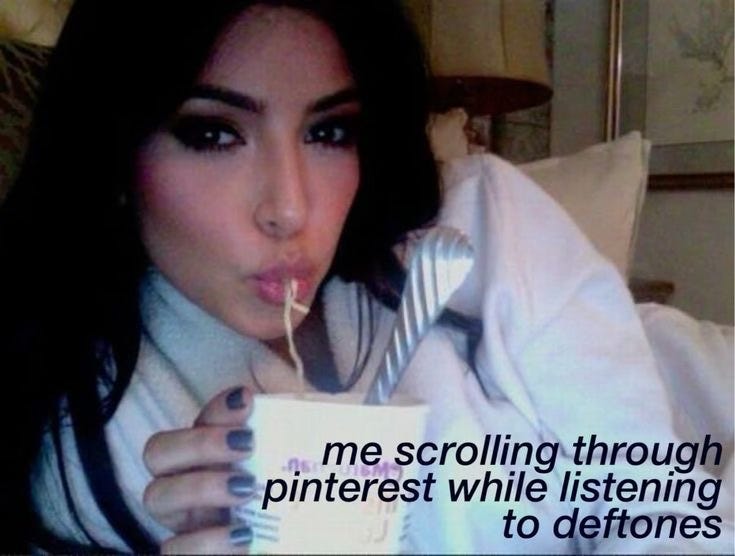 Yeah, I guess. I liked them. I knew the hits, could listen and enjoy songs I didn’t know, and if asked, I would have said I like Deftones. But I wasn’t engaging with their music, themes, lyrics, whatever. I’m still not sure I do. But I appreciate the way the band’s sound remains identifiable, while songs range from horny and pathetic to angry and defeated. Moreno’s voice is capable and excellent at what I call whisper moaning; he screams without being cringe (something that Limp Bizkit’s lead could never) and growls without that condescending energy that annoys the crap out of me in TOOL.